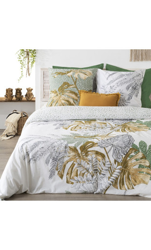 Cette parure très tendance avec ses motifs tropicaux, apportera une touche moderne dans votre chambre. N'hésitez pas à ajouter des coussins et oreillers moutarde pour un style certain.