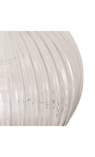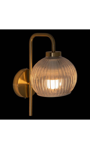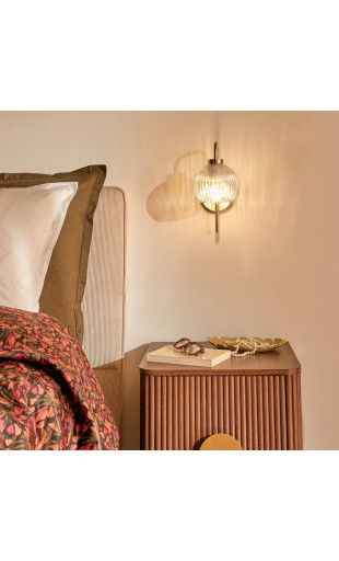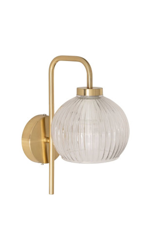 La structure en métal doré reflète la lumière et ajoute une touche chaleureuse, tandis que le verre transparent laisse apparaître l’ampoule pour un rendu moderne et raffiné. Ce jeu de matières en fait un luminaire aussi décoratif que fonctionnel.
