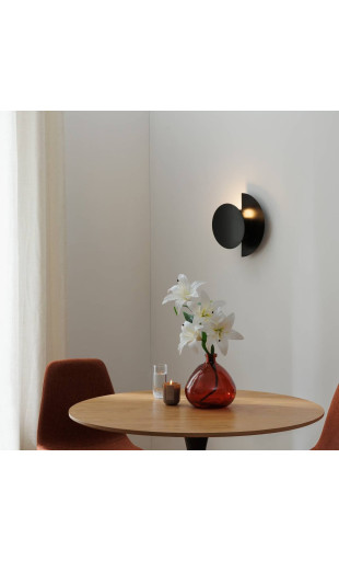Avec son disque rond en métal noir, l’applique Mystu se distingue par sa ligne épurée et moderne. Elle diffuse une lumière douce et chaleureuse, créant une atmosphère élégante aussi bien dans un salon que dans une chambre ou un couloir.