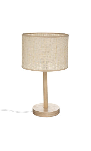 Le pied en bois et l'abat-jour (D. 25 x H. 17 cm) en paille apporteront une touche naturelle dans la pièce.