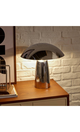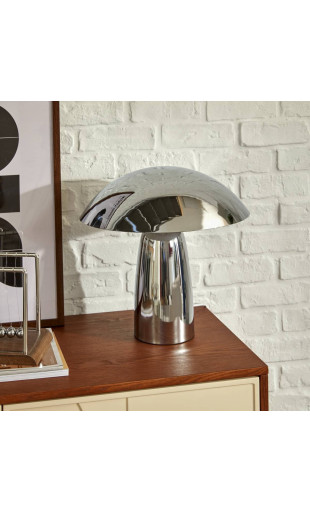 Avec sa forme iconique de champignon et sa finition métal chromé brillant, cette lampe devient un véritable élément décoratif tout en offrant un éclairage fonctionnel et élégant.