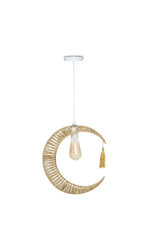 Illuminez la chambre de votre enfant avec douceur et poésie grâce à la suspension lune Bella Atmosphera. Réalisée en corde tressée, cette lampe en forme de croissant de lune crée une atmosphère chaleureuse et réconfortante, parfaite pour accompagner les nuits des petits comme des grands rêveurs.