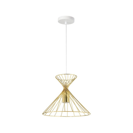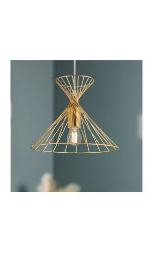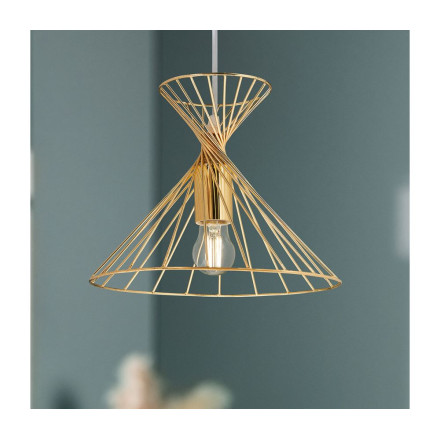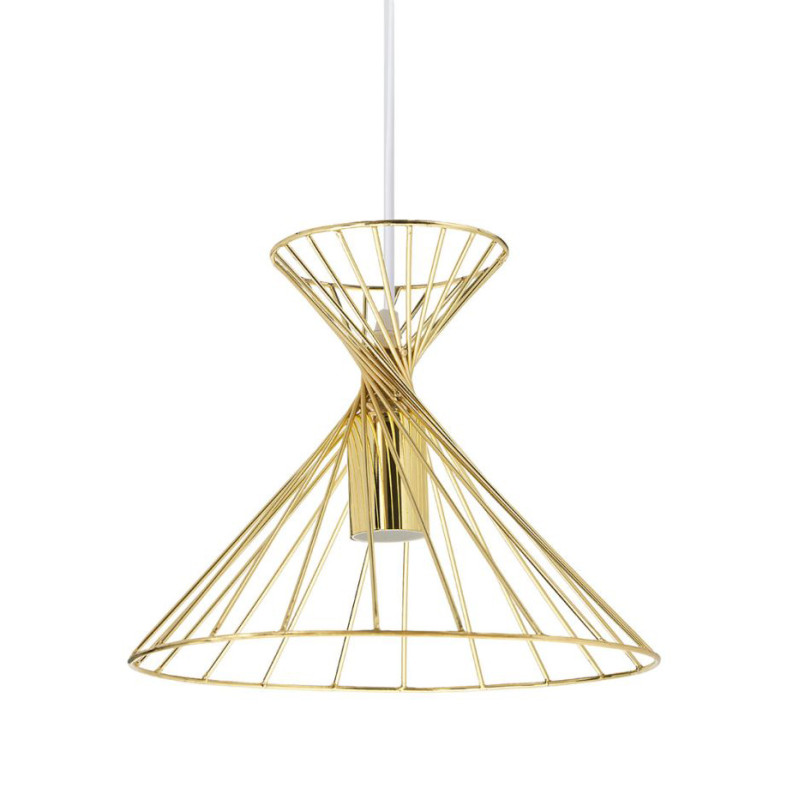 La suspension Giulia séduit par sa silhouette en sablier, à la fois moderne et intemporelle. Son métal doré brossé reflète délicatement la lumière, créant une ambiance chaleureuse et sophistiquée.