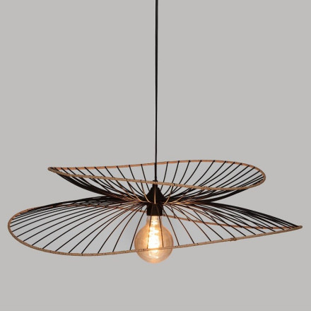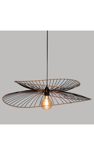 - Les courbes arrondies et asymétriques de la suspension métal et rotin lui donnent une forme originale et mouvementée.
