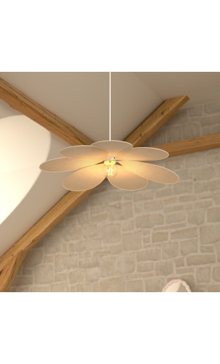 La suspension Naya se distingue par son abat-jour composé de pétales lin beige, créant une silhouette florale légère et gracieuse.