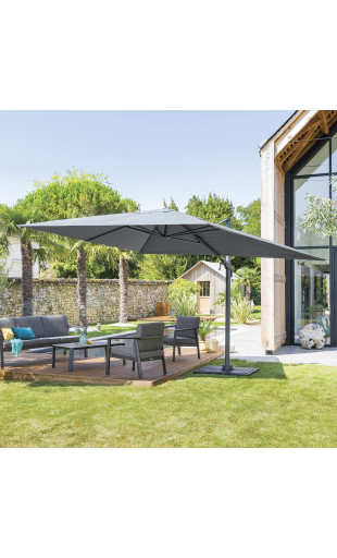 Contrairement à un parasol droit ou inclinable, le parasol déporté apporte une grande surface d’ombre. Avec sa toile déportée, vous profitez d’une meilleure protection sans être gêné par le mât. Vous pouvez installer vos transats ou vos fauteuils du jardin sans vous préoccuper de la structure. La toile de parasol flotte au-dessus de votre tête. Le parasol déporté inclinable offre une rotation à 360°. Il suit les mouvements du soleil et vous protège à tout moment de la journée.