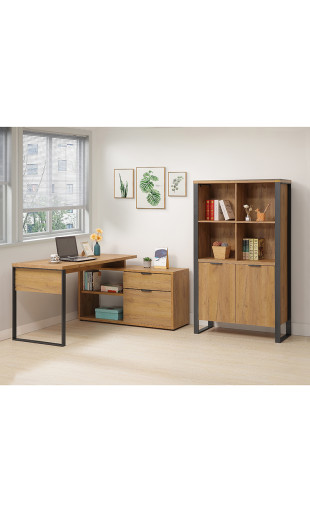 Le bureau d'angle 2 cases 1 tiroir 1 porte Ron allie style et fonctionnalité.