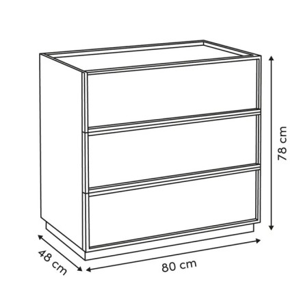 Avec une largeur de 80 cm, la commode Framy offre un excellent compromis entre capacité de rangement et encombrement réduit. Elle est idéale pour les petits comme pour les grands espaces.
