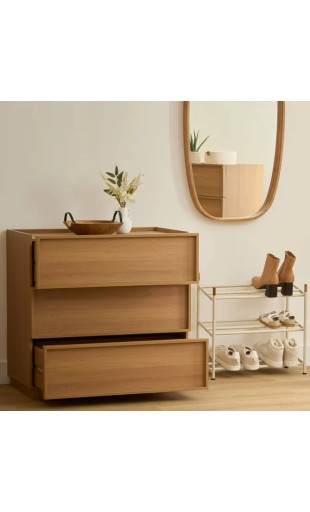 Cette commode est équipée de 3 tiroirs spacieux, parfaits pour ranger vêtements, linge de maison, accessoires ou documents. Chaque tiroir bénéficie de débords anti-chute, garantissant une meilleure sécurité et un maintien optimal du contenu.