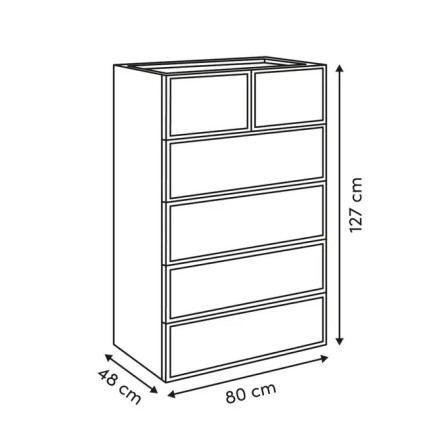 Avec une largeur de 80 cm, la commode Framy offre un excellent compromis entre capacité de rangement et encombrement réduit. Elle est idéale pour les petits comme pour les grands espaces.