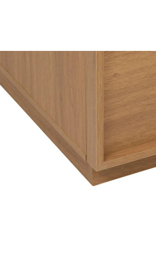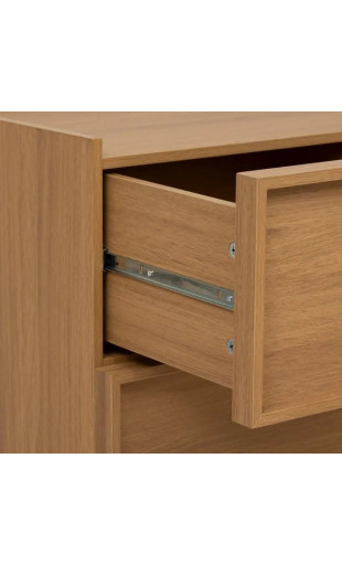 Avec ses lignes épurées et sa finition effet bois foncé, la commode Framy s’intègre parfaitement dans une chambre, un salon ou un bureau.