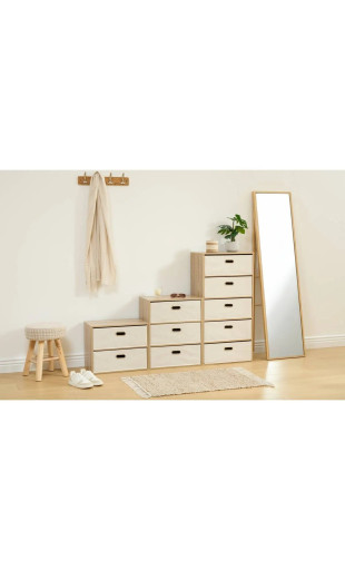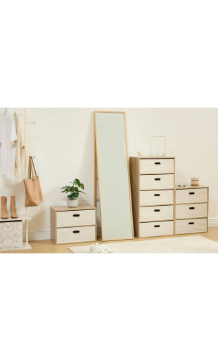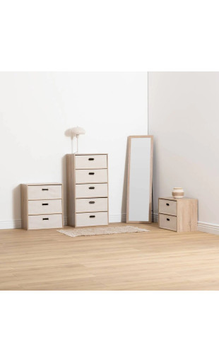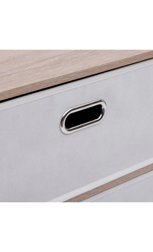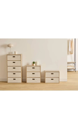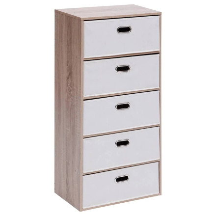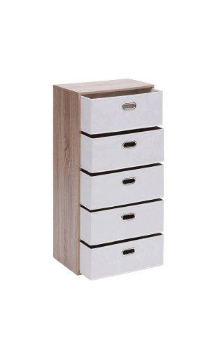 Dotée de 5 grands tiroirs en tissu avec fond renforcé, elle offre un espace de rangement optimal pour vos vêtements, accessoires ou linge de maison, tout en restant légère et facile à déplacer. Sa structure en panneau de particules aggloméré assure solidité et stabilité pour une utilisation durable au quotidien.