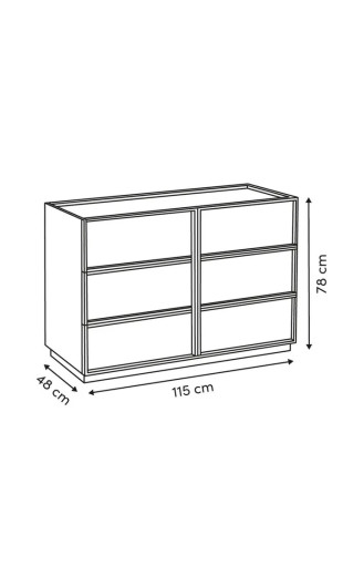 Cette commode est équipée de 6 tiroirs spacieux, parfaits pour ranger vêtements, linge de maison, accessoires ou documents. Chaque tiroir bénéficie de débords anti-chute, garantissant une meilleure sécurité et un maintien optimal du contenu.