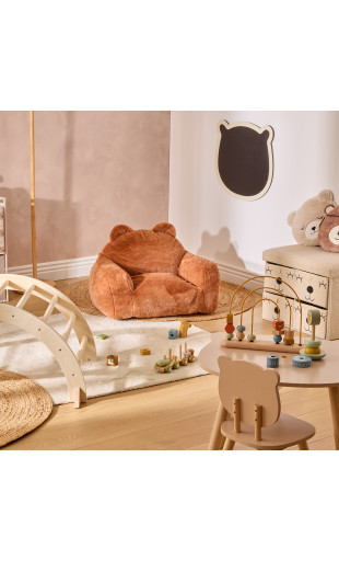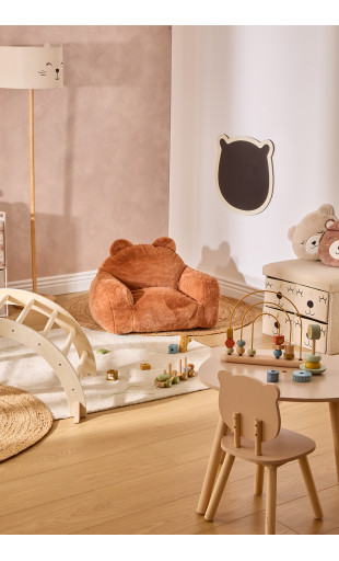 Le fauteuil Mamad se distingue par son dossier en forme de tête d’ourson avec petites oreilles, pensé pour séduire les enfants tout en créant une atmosphère douce et réconfortante. Sa couleur terracotta, tendance et mixte, s’intègre facilement dans une chambre d’enfant, une salle de jeux ou un salon familial.