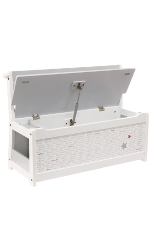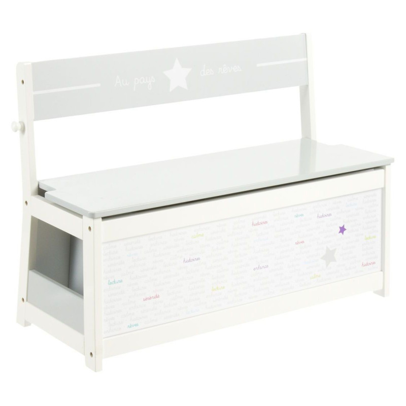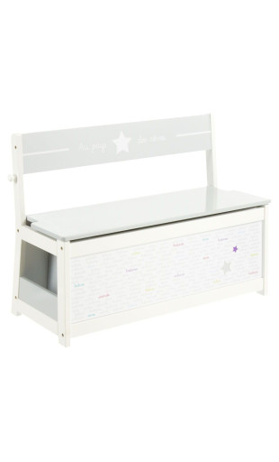 Avec son coloris blanc et gris et sa décoration motifs étoiles, ce banc s’intègre parfaitement dans une chambre d’enfant.