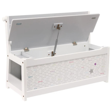 Le banc cache un coffre spacieux permettant de ranger peluches, livres, jeux et accessoires. Une solution idéale pour garder la chambre propre et bien organisée, tout en apprenant à votre enfant à ranger ses affaires facilement.