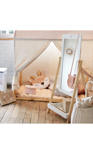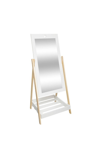 Miroir sur pied avec tablette en bois de la marque Atmosphera. Ce miroir dispose d'une tablette, idéal pour y ranger les affaires de votre enfants ou encore ses jouets. Sa taille est adaptée pour une chambre d'enfant.