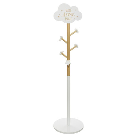 L’atout principal de ce porte manteau enfant atmosphera réside dans son thème nuage, étoile et lune ainsi que dans son coloris blanc dont la douceur est associée au côté naturel du bois de pin. Ensemble, ces trois éléments font de ce porte manteaux enfant une pièce à la fois mixte (pour les filles et pour les garçons !) et adaptée à toutes les tranches d’âge. Du porte manteau bebe nuage au porte manteau sur pied enfant, cette pièce fera des merveilles où qu’elle soit. Cet élément de rangement incontournable estsurmonté d’un gros nuage blanc recouvert d’un imprimé étoile et orné du message en lettres capitales dorées « MAKE SOME MAGIC ».