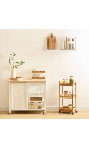Avec ses 3 plateaux de rangement ouverts, cette desserte vous permet de garder à portée de main tout ce dont vous avez besoin au quotidien : épices, condiments, ustensiles, produits de beauté, serviettes ou accessoires de toilette.