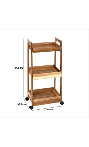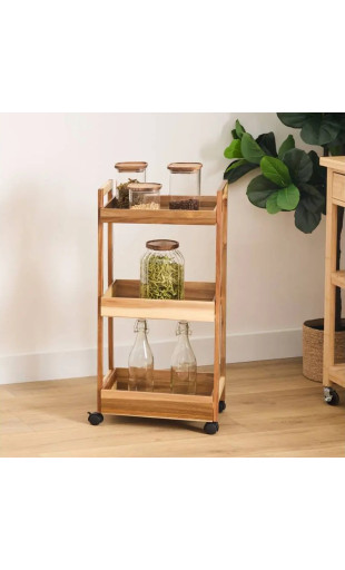 Apportez une solution de rangement pratique et esthétique à vos espaces restreints avec la desserte 3 niveaux acacia de la marque 5five. Grâce à son format étroit, ses roulettes pratiques et son design bois clair, elle s’intègre aussi bien dans une cuisine moderne que dans une salle de bain fonctionnelle.