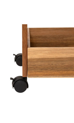 Équipée de 4 roulettes pivotantes, dont 2 avec freins, la desserte se déplace facilement selon vos besoins, puis reste bien en place une fois positionnée.
