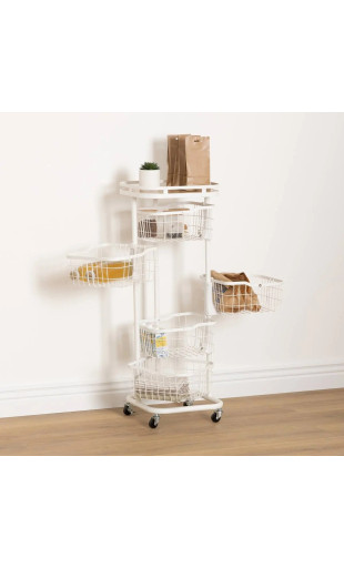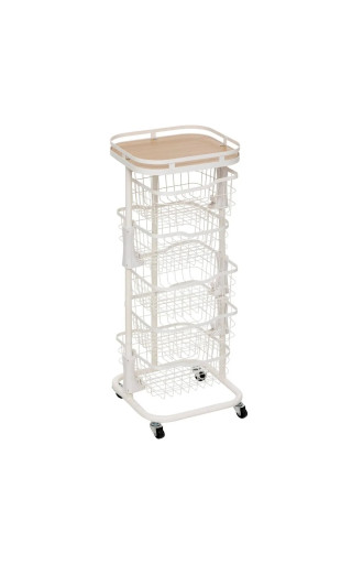 Dotée de 5 paniers rotatifs en métal ajouré, cette desserte vous offre un espace de stockage généreux et organisé. Fruits et légumes, produits ménagers, accessoires de salle de bain ou encore fournitures de bureau trouvent facilement leur place.