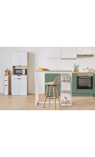 Le plan de travail central est doté d’un fond percé, permettant le passage discret des câbles électriques. Cet aménagement est idéal pour brancher facilement vos appareils électroménagers tout en conservant un espace propre et organisé.