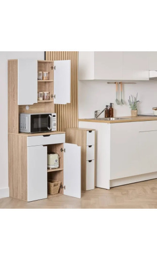 Grâce à sa conception en colonne, ce buffet de cuisine offre un important volume de rangement vertical tout en limitant l’encombrement au sol. Son design sobre et contemporain s’intègre facilement dans tous les styles d’intérieur : moderne, scandinave ou fonctionnel.