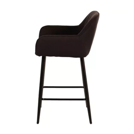 Grâce à son dossier enveloppant, ses accoudoirs intégrés et son piètement métal noir avec repose-pieds, ce tabouret apporte immédiatement une touche élégante et contemporaine à votre intérieur.