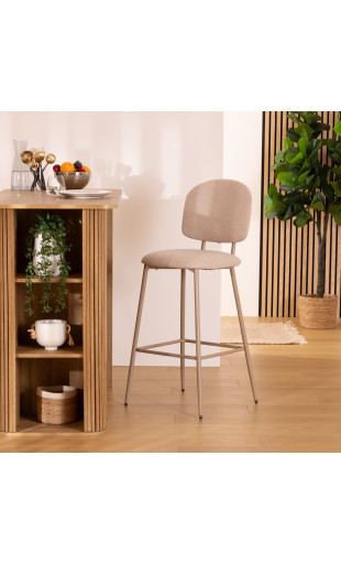 Le tabouret Kamili séduit par son look sobre et raffiné. Son revêtement en tissu beige s’associe facilement à toutes les décorations, qu’elles soient scandinaves, modernes ou bohèmes. La structure en métal assortie lui confère une grande stabilité tout en renforçant son allure design.