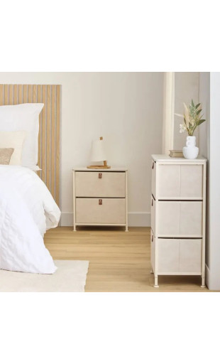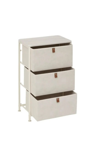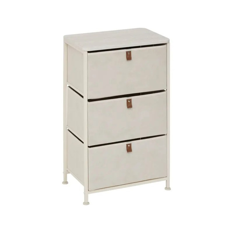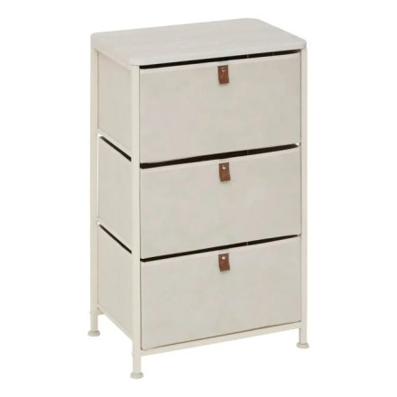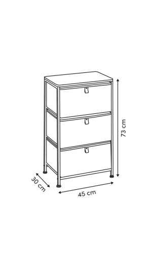 Ce meuble est équipé de 3 casiers en tissu offrant une capacité de rangement généreuse pour organiser vêtements, linge, accessoires, papiers ou objets du quotidien.