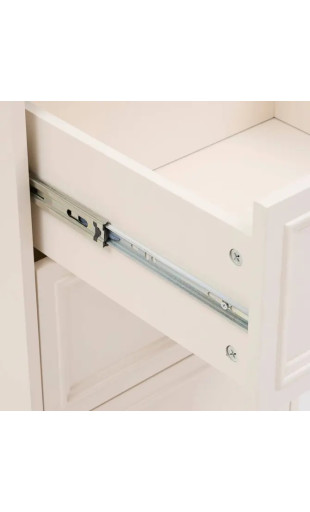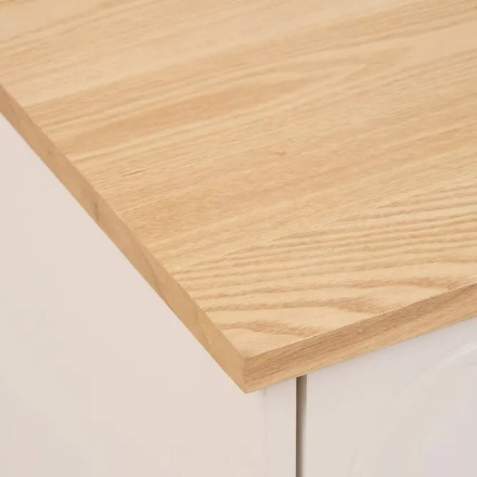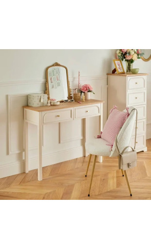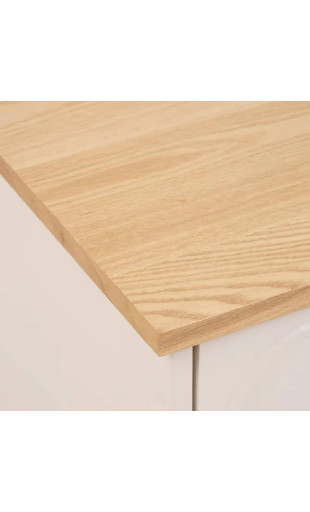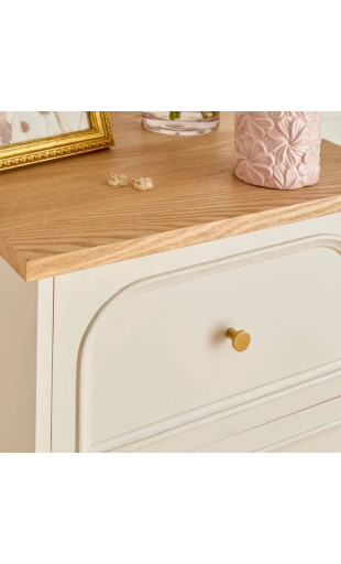 Son plateau supérieur placage frêne contraste avec le coloris ivoire et apporte tout le style et l'originalité de ce meuble à tiroirs.