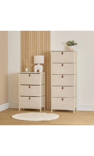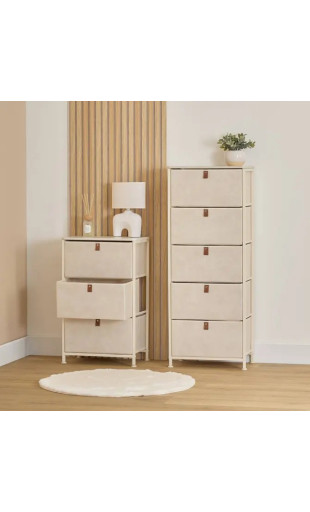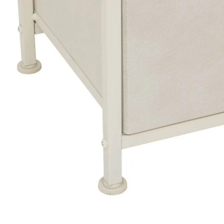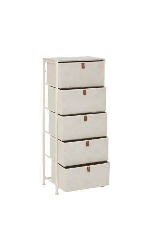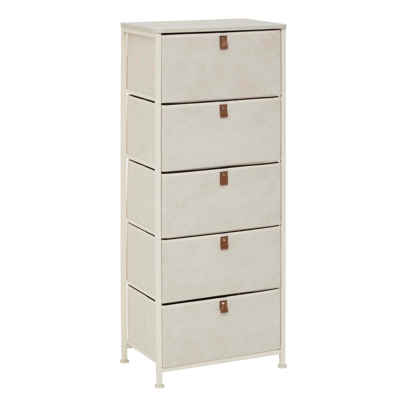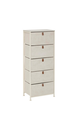 Ce meuble est équipé de 5 casiers en tissu offrant une capacité de rangement généreuse pour organiser vêtements, linge, accessoires, papiers ou objets du quotidien.