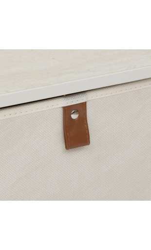 Ce meuble est équipé de 4 casiers en tissu offrant une capacité de rangement généreuse pour organiser vêtements, linge, accessoires, papiers ou objets du quotidien.