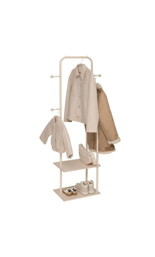 Design contemporain et naturel : La combinaison du métal et des étagères en bois couleur argile crée un rendu moderne et chaleureux, idéal pour les chambres, dressings ou entrées.
