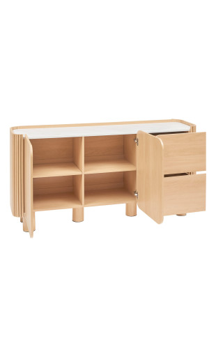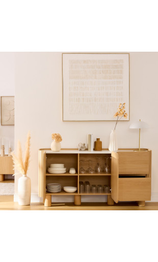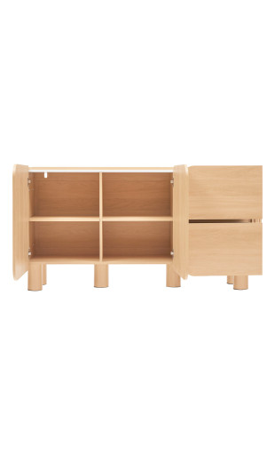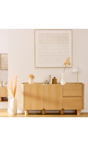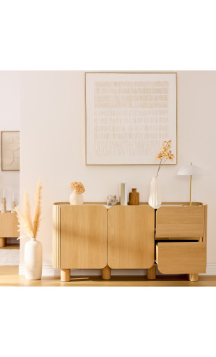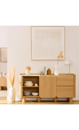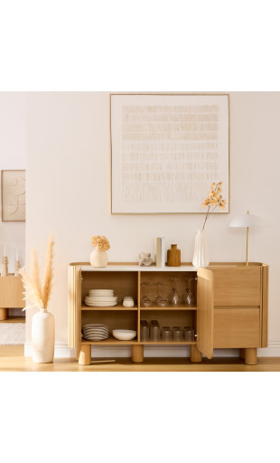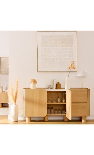 Pensé pour répondre aux besoins du quotidien, ce buffet Atmosphera dispose de : 2 portes avec étagères modulables, parfaites pour vaisselle, linge de table ou objets décoratifs, 2 tiroirs spacieux, idéals pour organiser couverts, papiers ou accessoires.