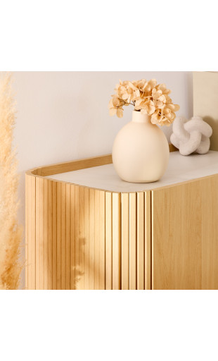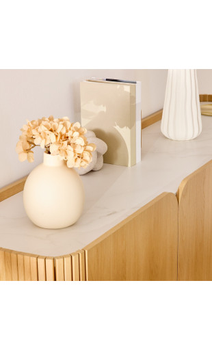 Grâce à son placage papier effet marbre, ce buffet reproduit fidèlement l’aspect luxueux du marbre tout en étant plus léger, plus homogène et plus simple d’entretien. Une solution idéale pour bénéficier d’un style haut de gamme sans les inconvénients du matériau naturel.