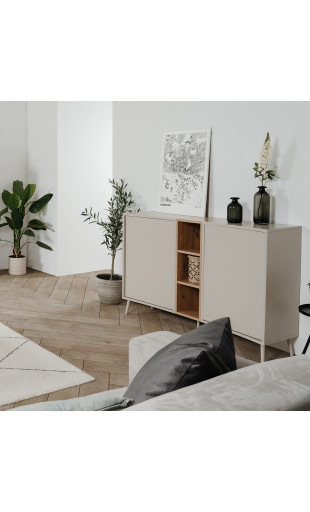 Le buffet Sinop se distingue par sa forme arrondie et fluide, qui adoucit l’espace et apporte une touche design à votre décoration. Son absence de poignées, remplacée par un système push to open, renforce son style minimaliste et épuré tout en offrant un grand confort d’utilisation.
