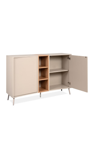 2 portes latérales équipées d’une étagère intérieure, idéales pour ranger vaisselle, linge de table ou documents.