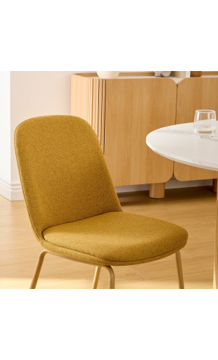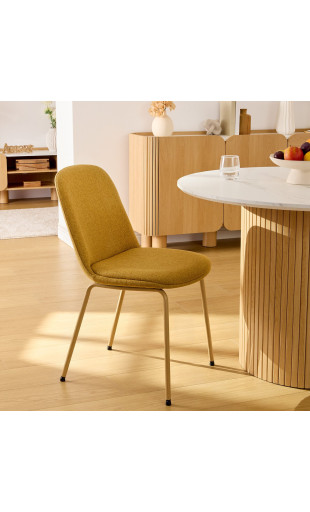 La chaise Neora séduit par ses lignes simples et équilibrées, parfaitement adaptées aux intérieurs contemporains, scandinaves ou minimalistes. Son revêtement en tissu ocre, coloré et lumineux, apporte une note chaleureuse tout en restant facile à assortir à différents styles de décoration.