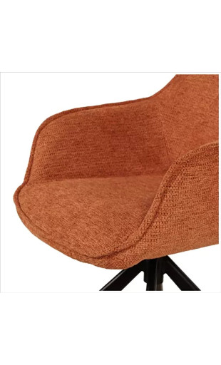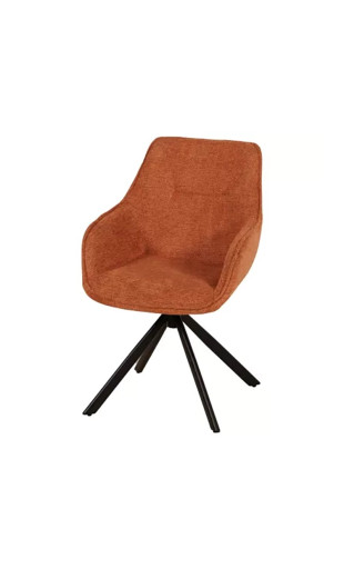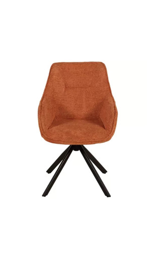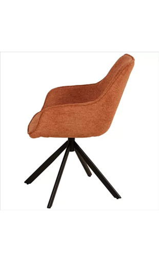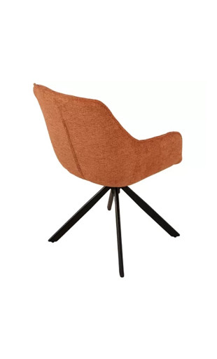 Revêtue d’un tissu terracotta au coloris tendance et raffiné, ce fauteuil rotatif s’intègre parfaitement dans les intérieurs modernes ou industriels. Grâce à son mécanisme pivotant à 360°, profitez d’une liberté de mouvement optimale pour plus de praticité au quotidien.