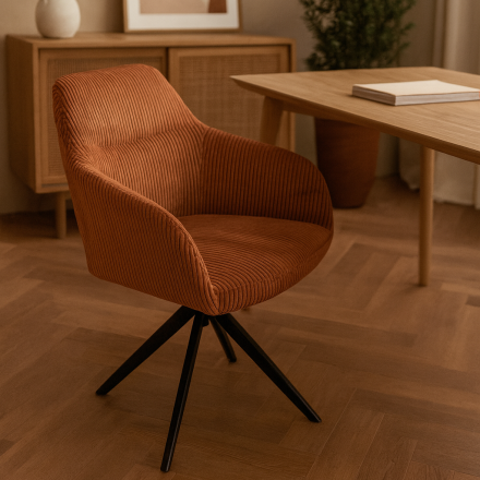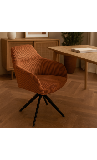 La chaise pivotante en velours côtelé ambre Thélyo est une pièce élégante et confortable qui ajoute une touche de sophistication à tout espace intérieur. Son assise est recouverte d'un velours côtelé doux au toucher, offrant une texture raffinée et un confort exceptionnel.