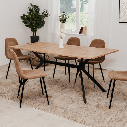 Découvrez l'harmonie parfaite entre la chaleur et l'industriel avec la table plateau effet chêne à piètement en métal noir Onex.