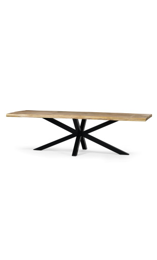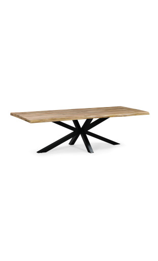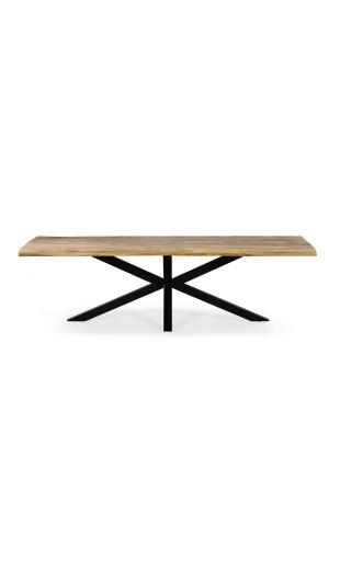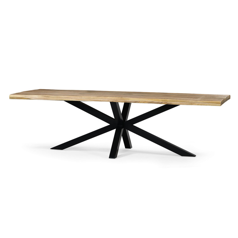 La table Théo associe la chaleur du bois massif à un piètement étoile en métal noir, apportant stabilité et style.