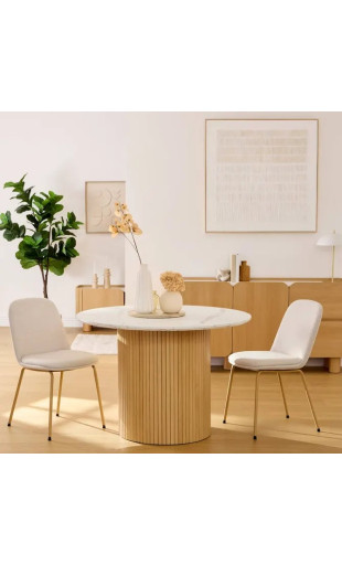 Avec son diamètre de 110 cm et sa hauteur standard de 76 cm, cette table ronde accueille confortablement 4 à 6 personnes, idéale pour les repas quotidiens comme pour les dîners entre proches. Son format circulaire favorise les échanges et optimise l’espace, parfait pour les salles à manger ou les cuisines ouvertes.