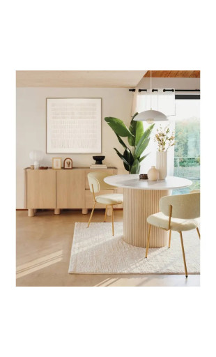 Offrez à votre salle à manger une allure chic et contemporaine avec la table à manger Homelya Ø110 cm de la marque Atmosphera. Alliant design moderne, matériaux responsables et fonctionnalité, cette table ronde devient le cœur convivial de vos repas en famille ou entre amis.
