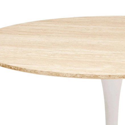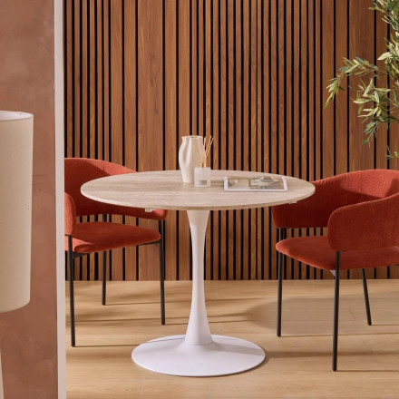 Grâce à son association de matériaux robustes et esthétiques, cette table ronde en métal et effet travertin constitue un choix durable et décoratif pour sublimer votre pièce à vivre.