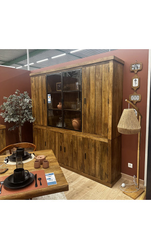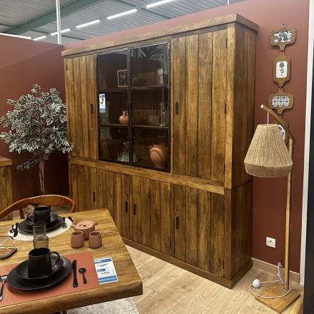 Fabriqué en bois de manguier massif, reconnu pour sa robustesse et son veinage naturel unique, ce vaisselier séduit par son aspect chaleureux et intemporel. Il dispose de 6 portes pleines idéales pour dissimuler vaisselle, linge de table ou objets du quotidien, ainsi que de 2 portes vitrées mettant en valeur vos plus belles pièces décoratives ou votre vaisselle.