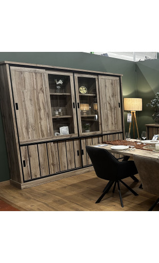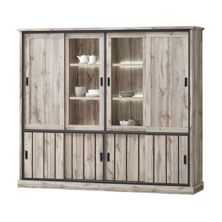 La partie basse se compose de 4 portes coulissantes, offrant un large espace de rangement pour votre vaisselle, vos nappes ou vos accessoires du quotidien.