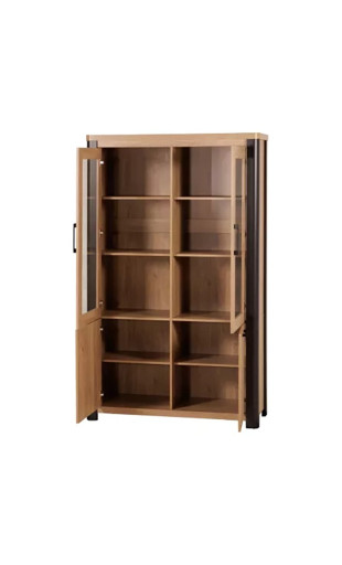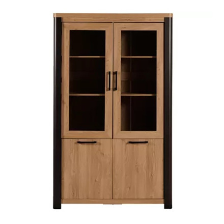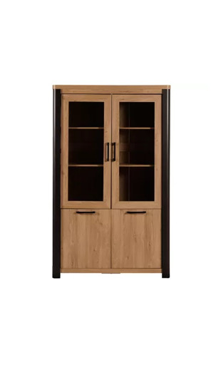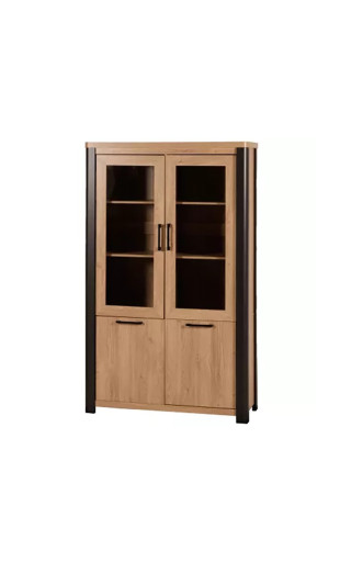 Alliez style contemporain et fonctionnalité avec cette superbe vitrine 2 portes vitrées + 2 portes pleines, au design moderne et chaleureux. Son association du coloris bois naturel et du noir mat crée un contraste élégant, parfait pour sublimer une salle à manger ou un salon moderne.
